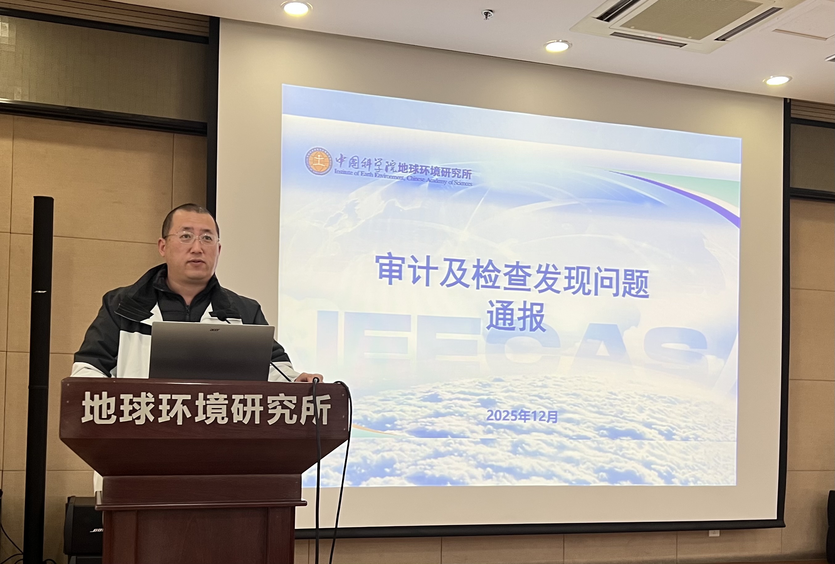 12月18日,中国科学院地球环境研究所召开全面从严治党大会,总结通报巡视整改情况及审计、检查发现问题,开展廉政党课教育。会议由纪委书记孟繁东主持,所领导班子成员、党委委员、纪委委员、中层管理干部、各研究室负责人、党支部书记、科研党支部、行政管理党支部全体党员参加了会议。