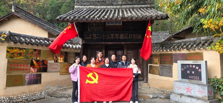 考察期间,团队成立了临时党小组开展组织生活,团队专程前往中国工农红军第二十五军军部江口旧址参观学习。通过实地瞻仰革命遗址、重温红色历史,全体成员深刻领悟到革命先辈艰苦奋斗的精神,进一步坚定了“把论文写在祖国大地上”的科研信念。