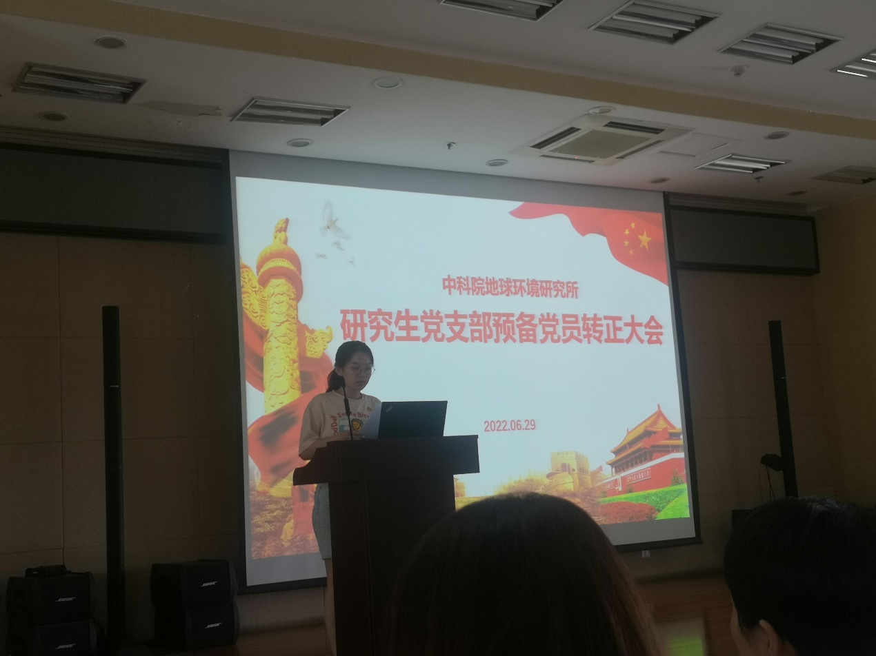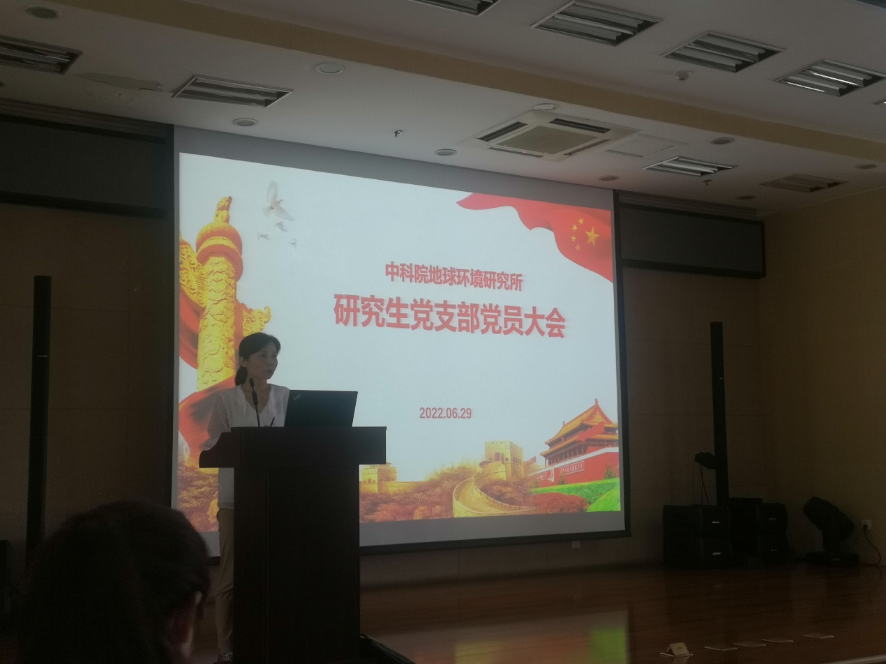 2022年6月29日下午,地球环境研究所研究生党支部召开了第二季度党员大会,会议的主要内容是讨论预备党员耿鋆、谢梅、陈铄元、曾雪莉、薛景彦转正事宜。会议由支部书记张英雯主持。