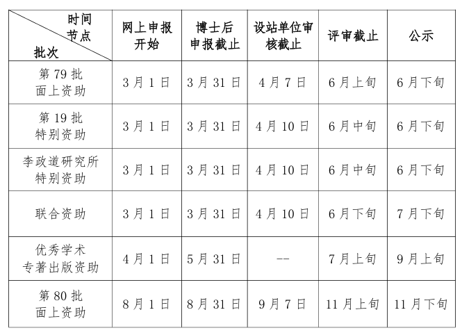 优秀学术专著出版资助用于资助博士后研究人员出版在站期间所取得的研究成果。资助领域为自然科学。专著编入《博士后文库》,有独立书号,由科学出版社出版。2026 年资助约24部专著,资助标准为每部专著约10万元。