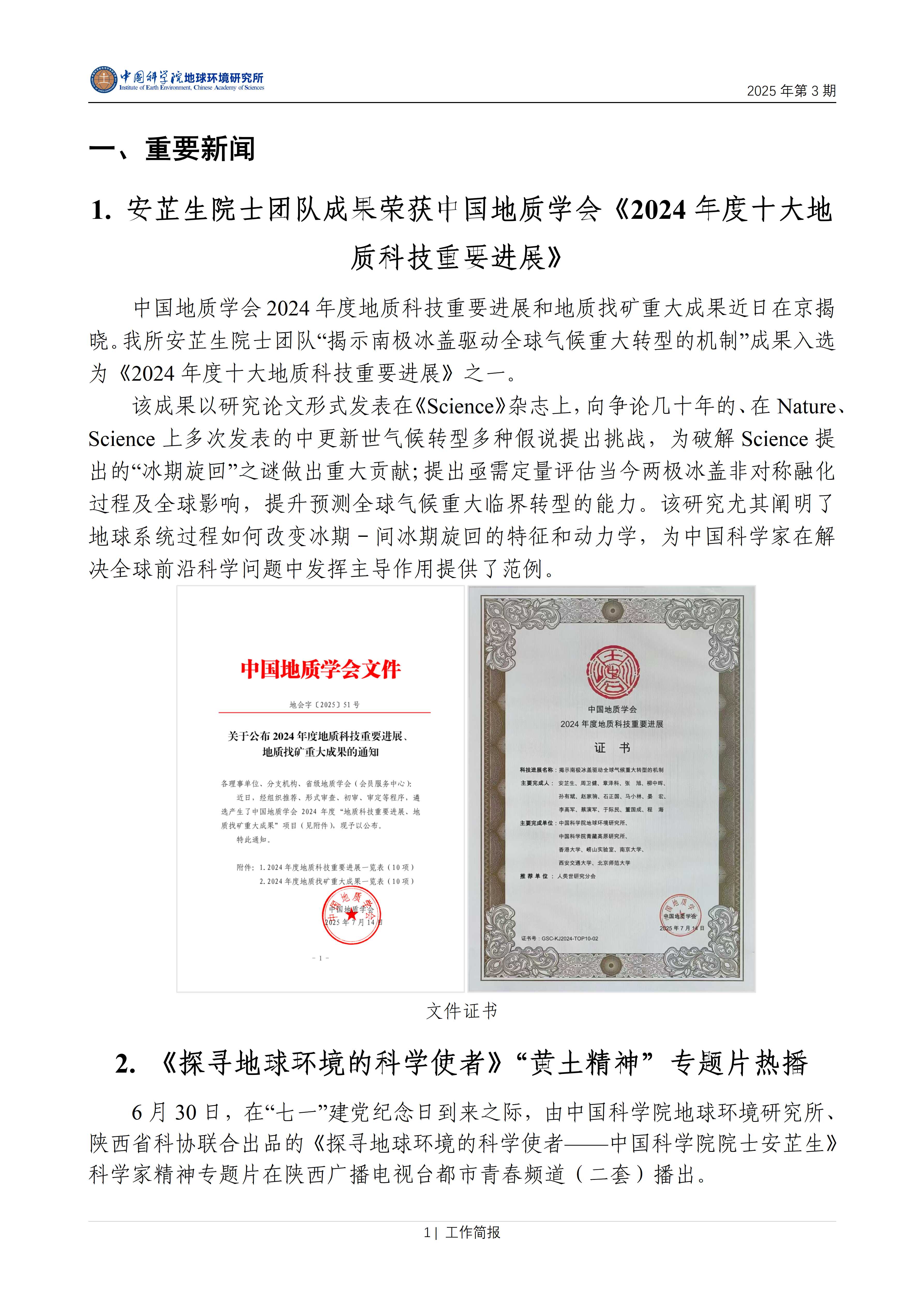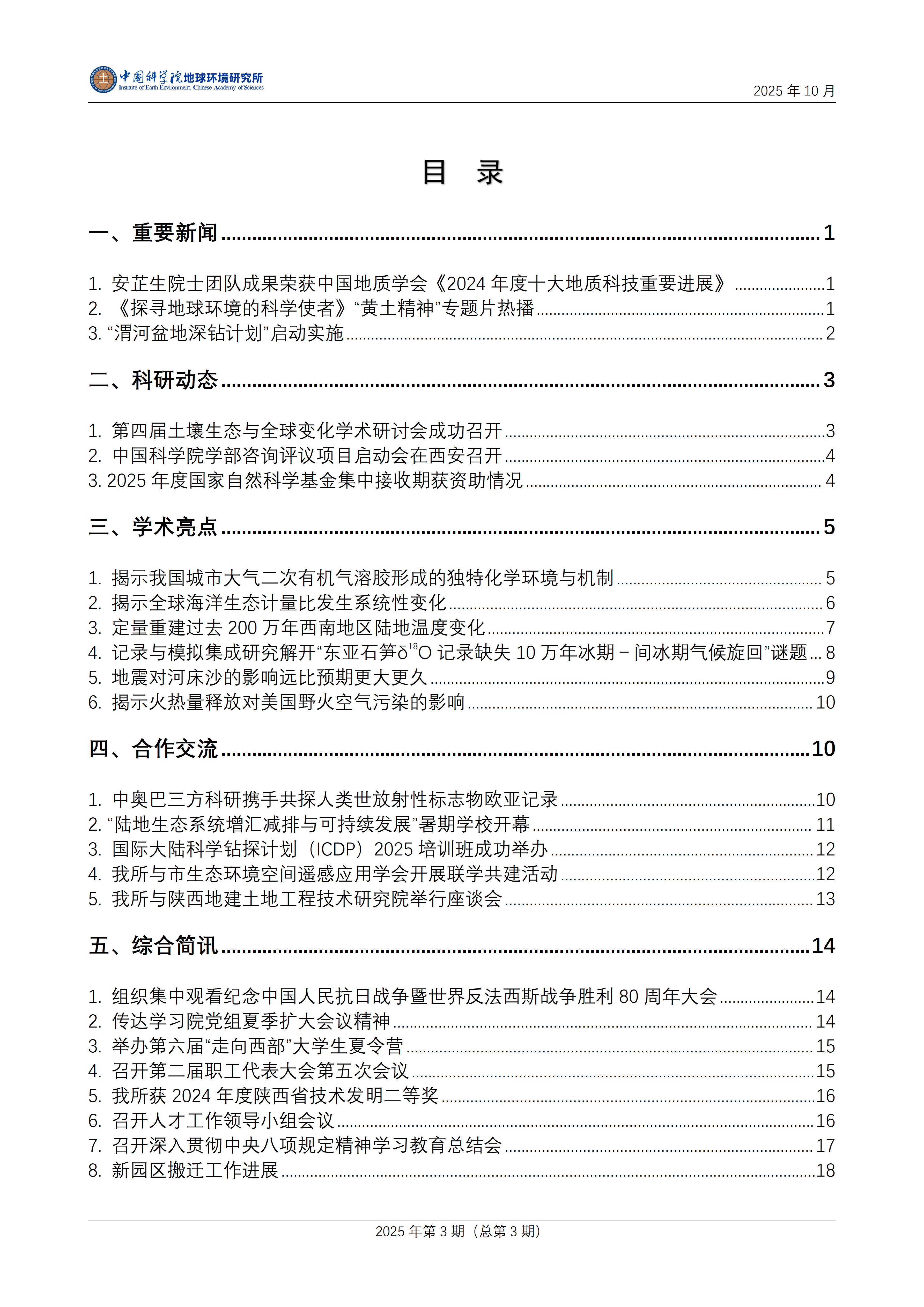 中国科学院地球环境研究所(以下简称“地球环境所”)成立于1999年,前身是1985年成立的中国科学院西安黄土与第四纪地质研究室,是中国科学院知识创新一期工程中唯一升格为研究所的单位。 地球环境所以“探索地球环境奥秘、服务生态文明建设”为使命,瞄准地球科学科技前沿,开展多尺度气候环境变化机理研究,致力于为地球系统科学发展做出创新性贡献,面向人与自然和谐共存的重大需求,为黄土高原及我国西部生态屏障建设提供战略科技支撑。 地球环境所秉承“如履薄冰、奋发图强”的黄土精神,扎根西部、砥砺前行,提出了一系列原创理论,使中国黄土成为国际公认的全球变化三大支柱之一,不断引领黄土与全球变化研究。研究成果8次获国家自然科学奖,3次入选中国科学十大进展。黄土与第四纪地质国家重点实验室连续7次评估优秀,研究所两次国际化评估中被认定为“世界级的大陆环境变化研究中心,具有世界级研究水平”。