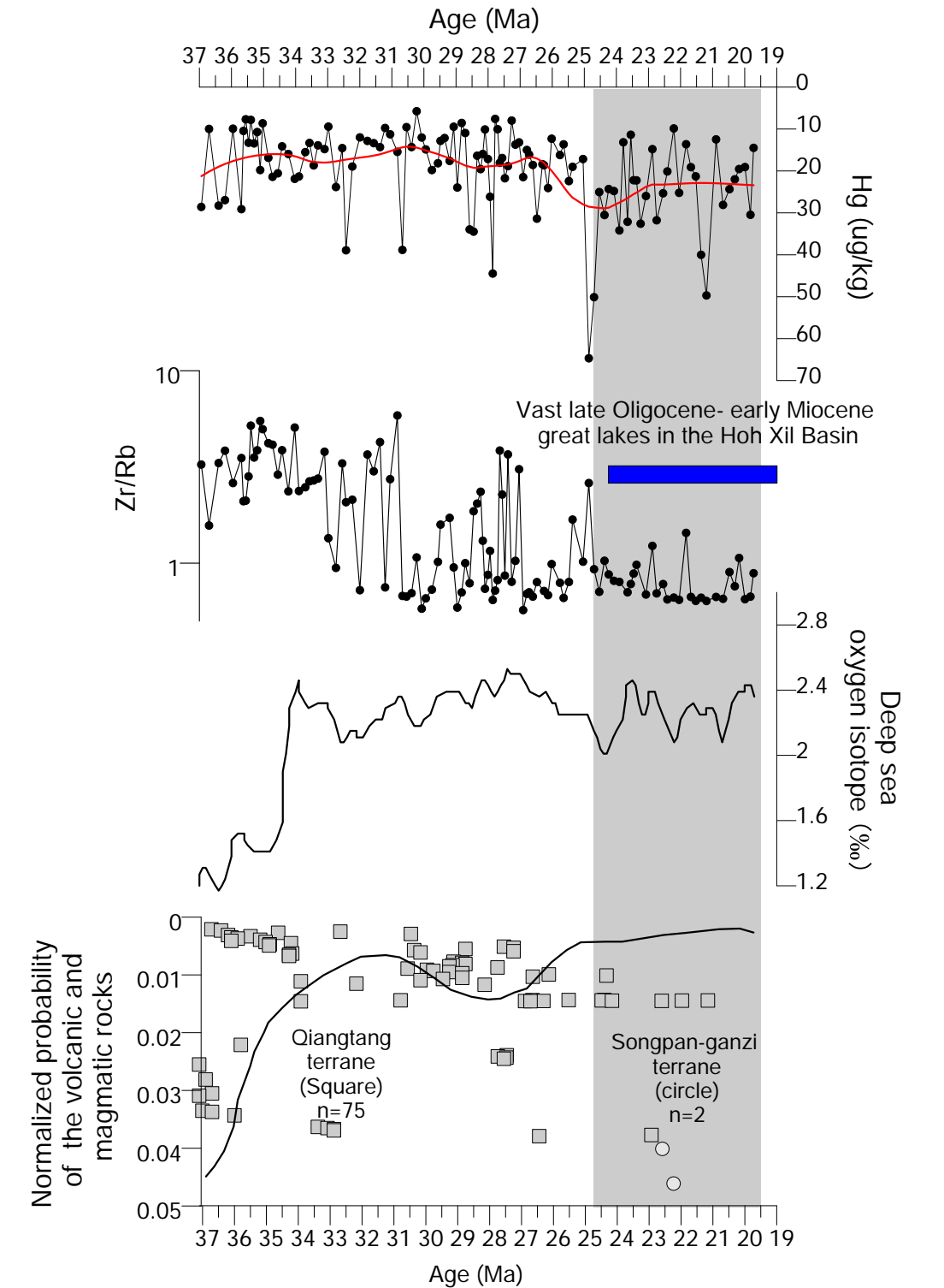 近日,黄土与气候变化团队常宏研究员、李乐意副研究员等在青藏高原中北部沱沱河盆地开展了相关的汞浓度研究。首次提供了青藏高原中北部沱沱河盆地从晚始新世至早中新世(约37–20 Ma)连续的汞浓度记录。