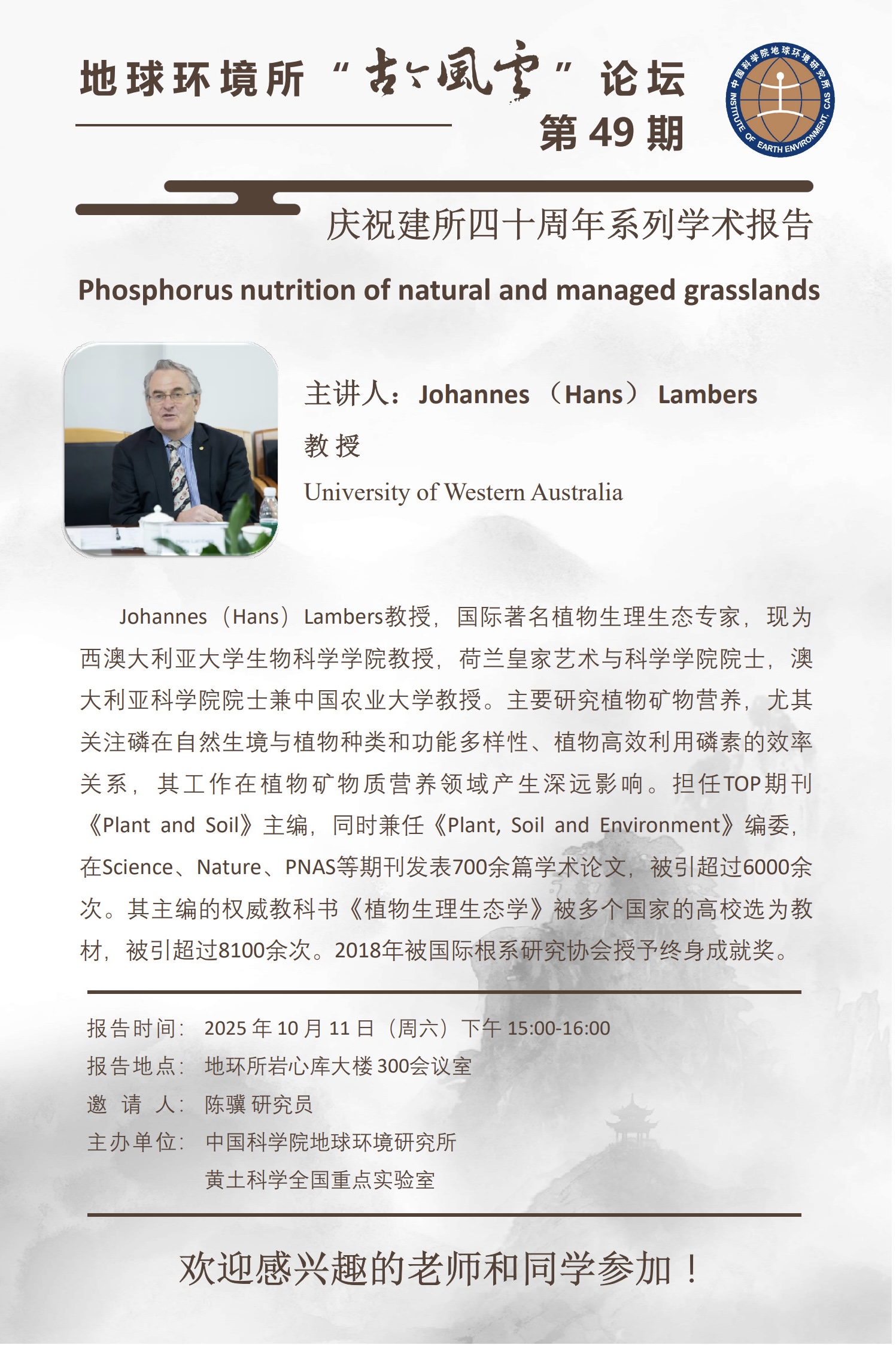 地球环境研究所“古今风云”论坛第四十九期——学术报告(10月11日)