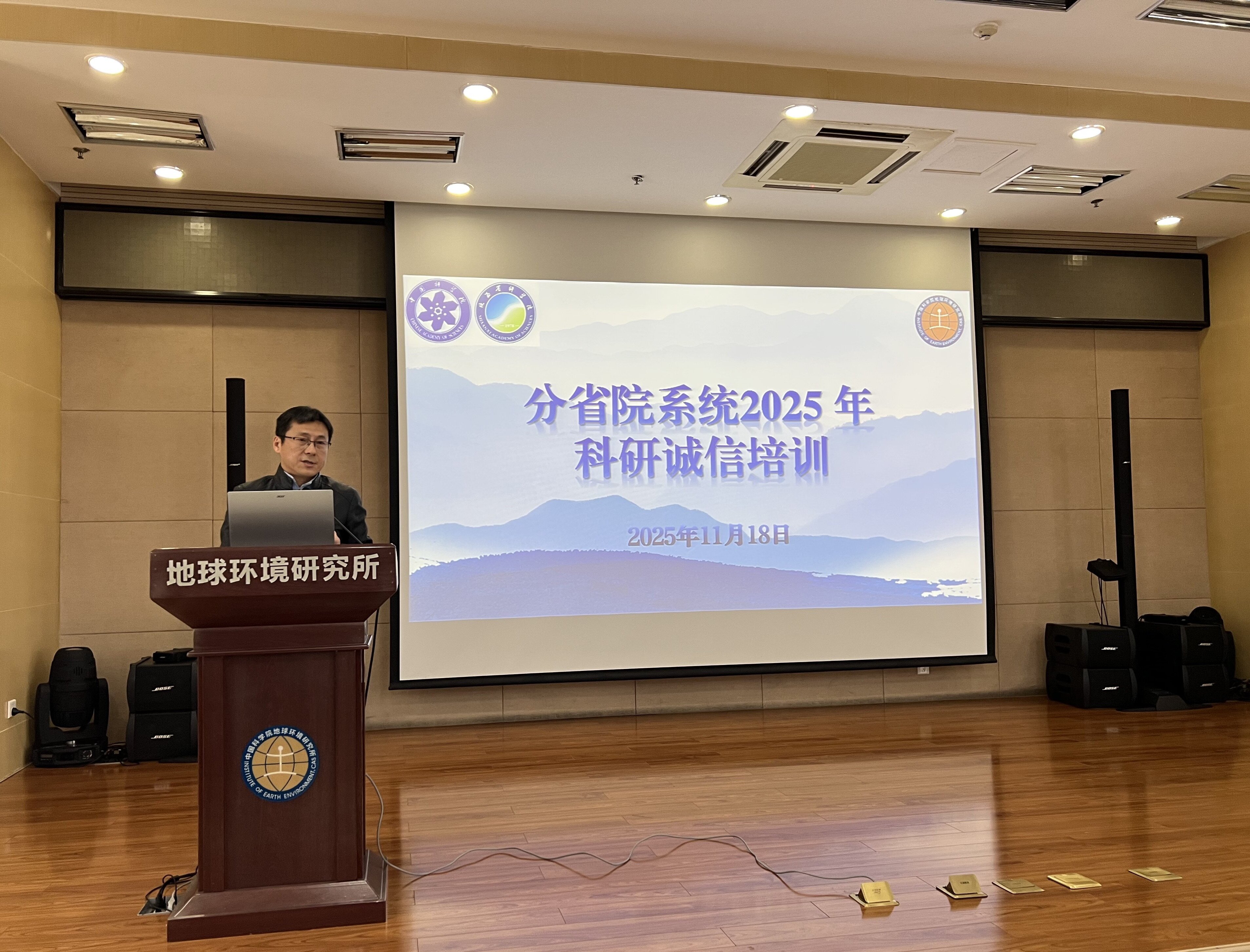 为深入推进科研诚信与学风建设,营造风清气正的科研环境,11月18日,中国科学院地球环境研究所与中国科学院西安分院 陕西省科学院联合举办2025年科研诚信宣讲会。会议特邀地球环境所加速器质谱中心主任侯小琳研究员,结合其丰富的科研实践开展科研诚信主题宣讲。西安分院纪检组组长、陕西省科学院党组成员李晋芳出席会议,分省院系统单位科研诚信专员及部分科研人员代表、地球环境所副研以上职工及新入学研究生参加会议。会议由地球环境所纪委书记孟繁东主持。