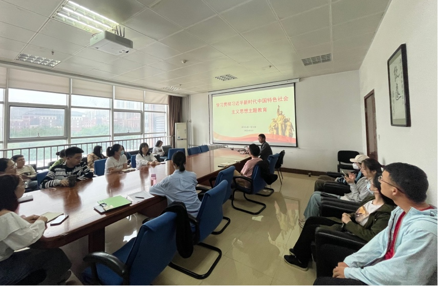 5月31日下午,研究生第一党支部以“支部书记讲党课”形式开展了“学习贯彻习近平新时代中国特色社会主义思想主题教育”专题学习。会议主要对“习近平新时代中国特色社会主义思想实现了马克思主义中国化时代化新的飞跃”、 “习近平新时代中国特色社会主义思想的世界观和方法论”、“中国式现代化”及“全面建设社会主义现代化国家的战略部署和要求”四个专题进行了学习交流。会议由研究生第一党支部书记张建广主持。