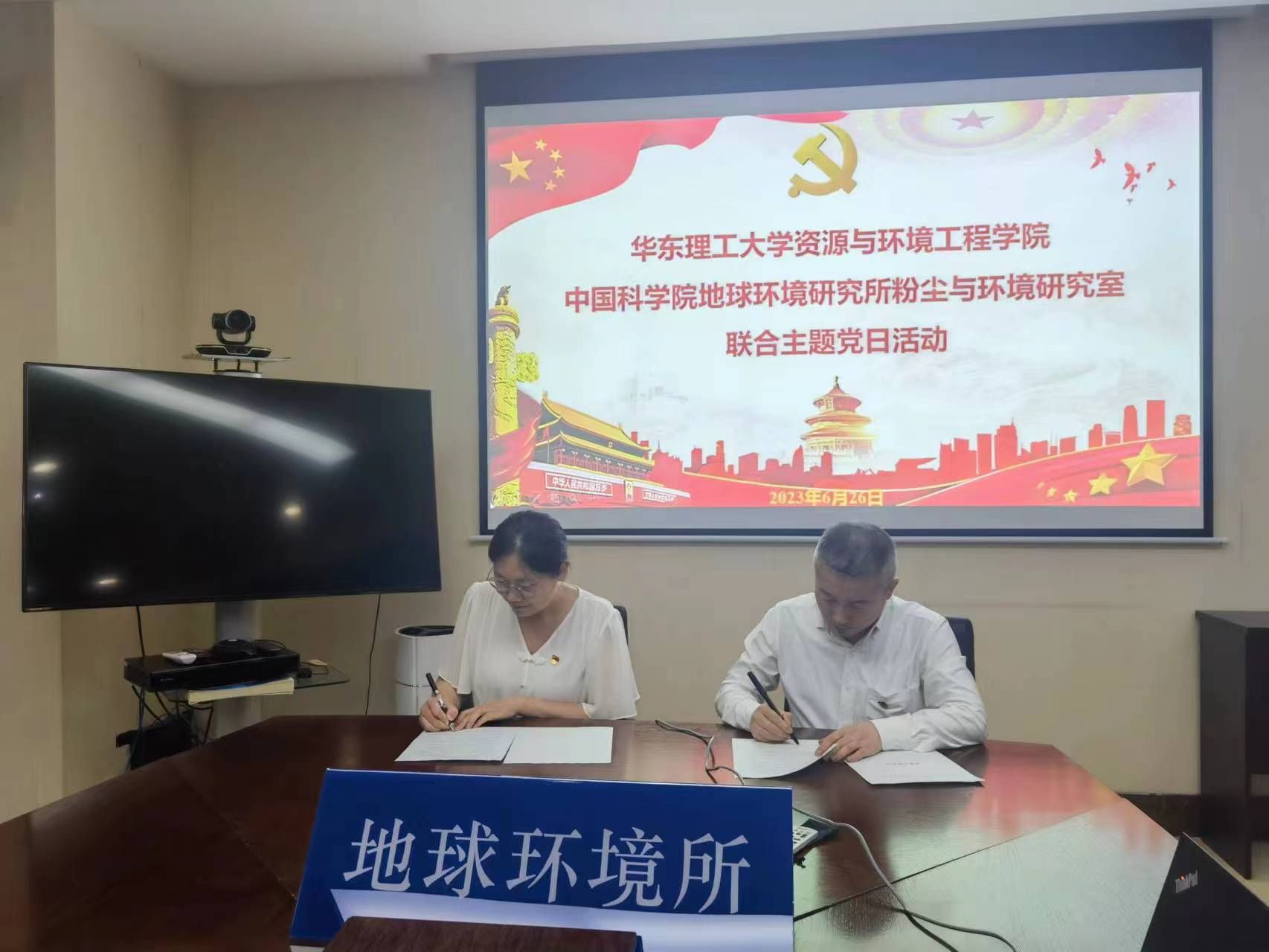 为深入学习贯彻党的二十大精神,推进学习贯彻习近平新时代中国特色社会主义思想主题教育走深走实,促进交流,深化合作。中国科学院地球环境研究所粉尘与环境研究室党支部联合华东理工大学资源与环境工程学院环境科学教工党支部,于 2023 年 6 月 26日下午在地环所岩心库大楼1102会议室开展“推进主题教育走深走实 创新基层党建工作载体”主题党日活动,就主题教育开展、基层党建工作、学科科研发展、学生管理工作等方面进行深入交流学习。华东理工大学资源与环境工程学院党委书记修光利、党委副书记曹娜、副院长孙泽及双方10余名党员代表及民主党派代表参加了此次活动。