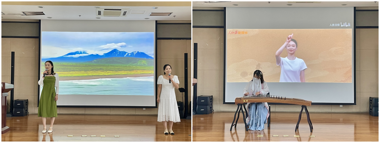 歌曲《喀秋莎》将思绪拉回充满硝烟的年代,歌声中是对爱情和美好生活的向往,也是对祖国的眷恋。古筝独奏《万疆》弹奏出华夏儿女的民族自豪感和爱国情怀,吾为中华,天堑无涯,山河无恙,吾国万疆!诗朗诵《百名院士的红色情缘》带我们共同学习老一辈科学家怀揣一腔赤诚,秉承报效祖国、振兴中华的美好初心,坚定奋战在科研一线的执着。诗朗诵《红色赞歌》带我们从光辉历程中汲取奋进力量,坚定信念与党同心同行。万家灯火,映照着祖国的美好景象,国泰民安,映射出新时代中国特色社会主义事业的伟大成就,活动在合唱《灯火里的中国》中圆满落幕。